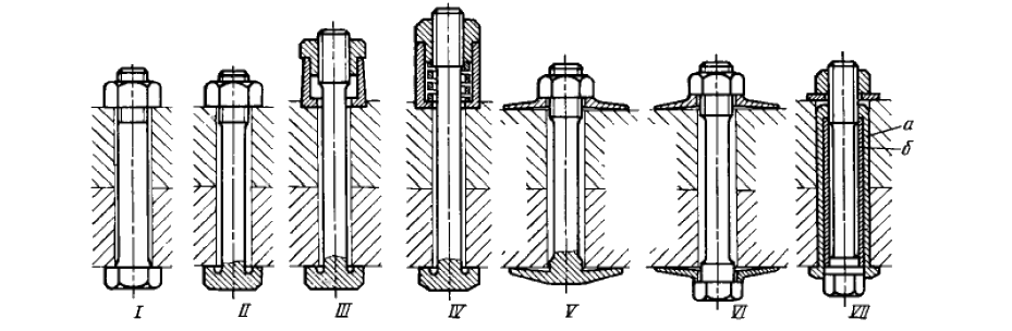 - Упругие. Решения для ответственных узлов. Стержень имеет меньший диаметр в сравнении с наружным диаметром резьбы.
