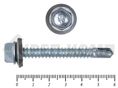 Саморез кровельный цинк, с шайбой EPDM, 6,3х 38 К КРЕП-КОМП (2000шт)