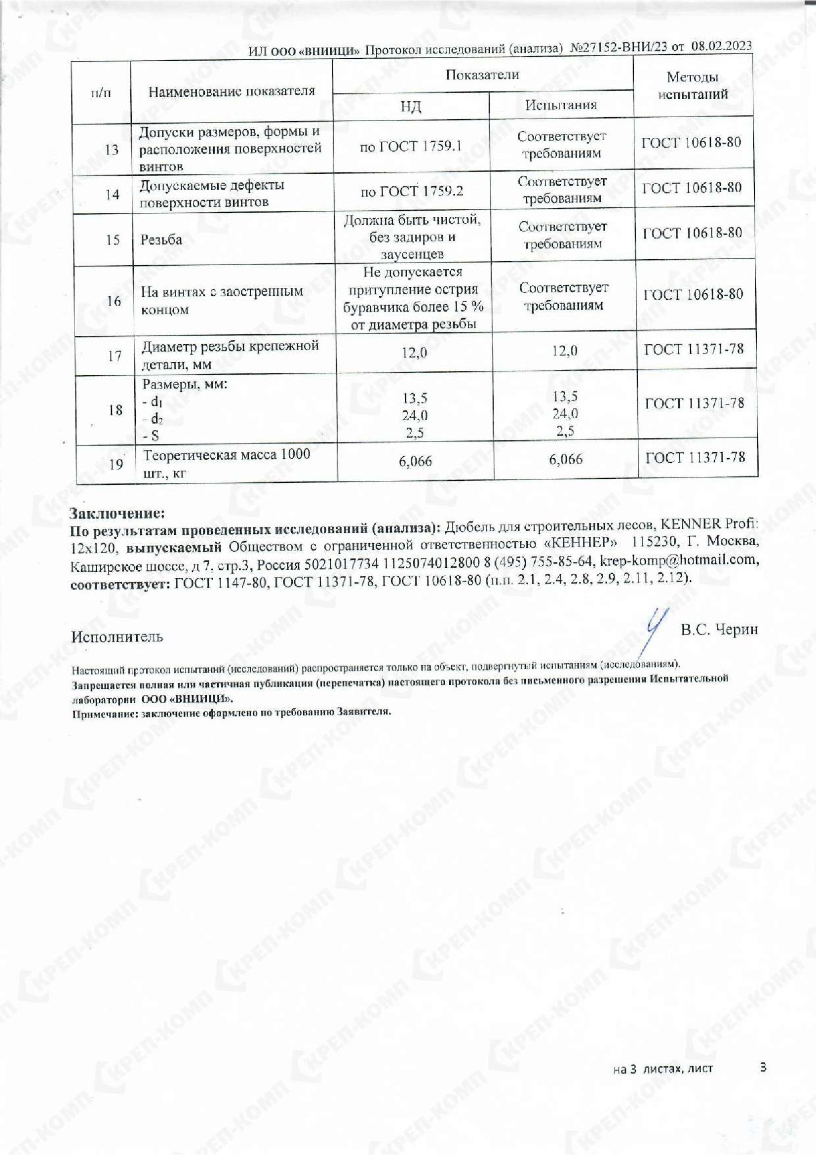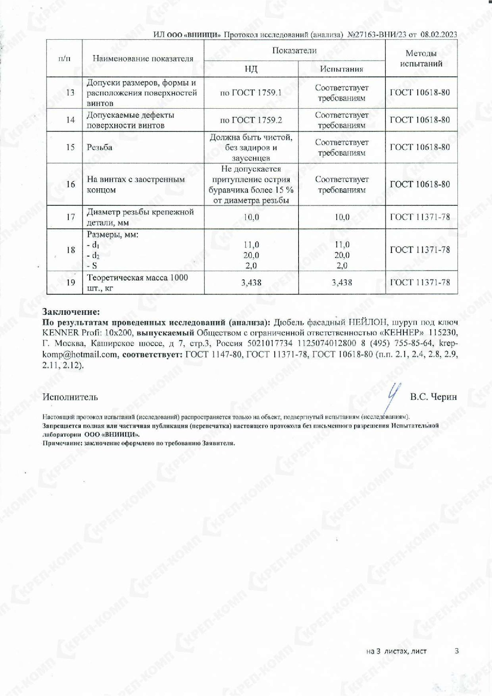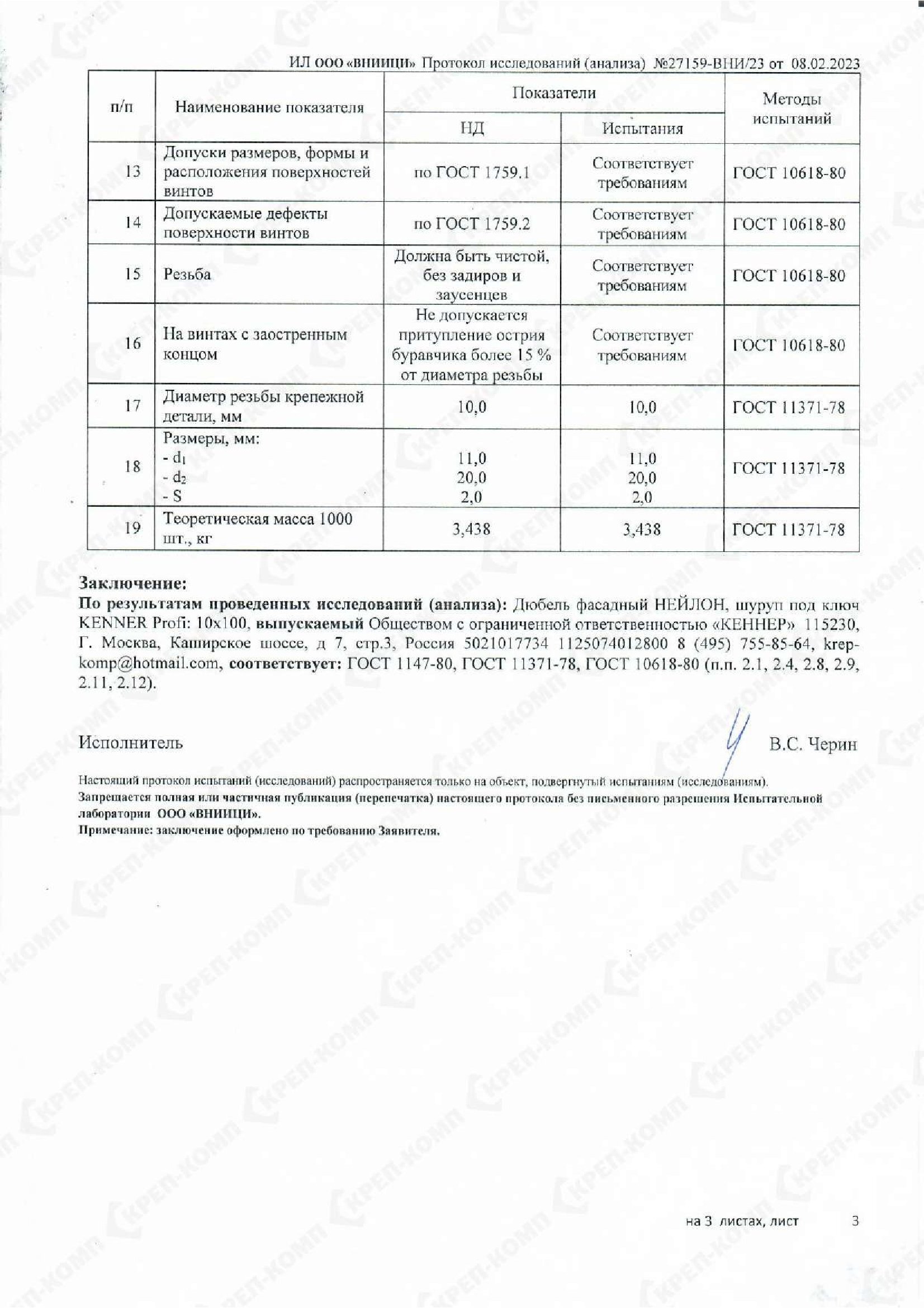 • Скачать Сертификат соответствия на дюбеля кровельные