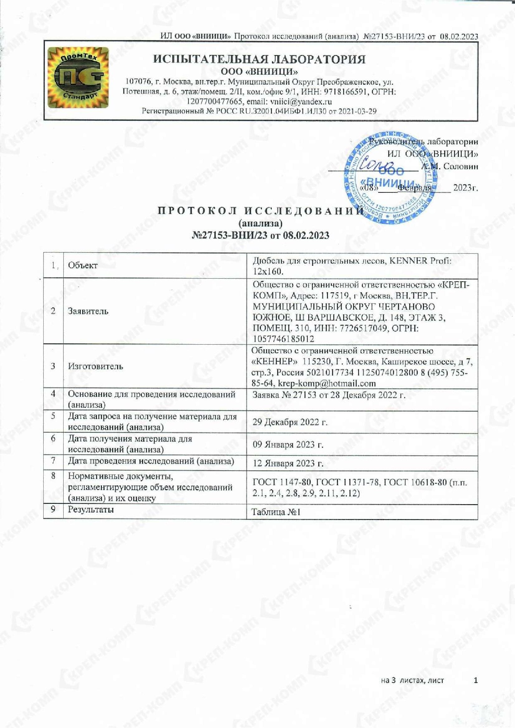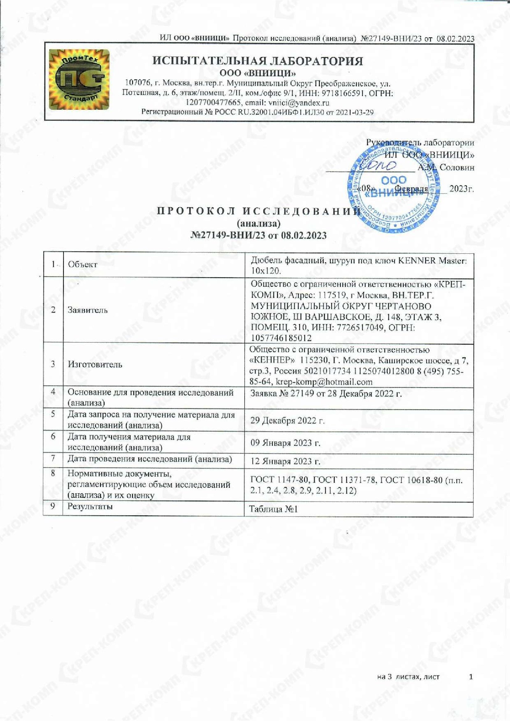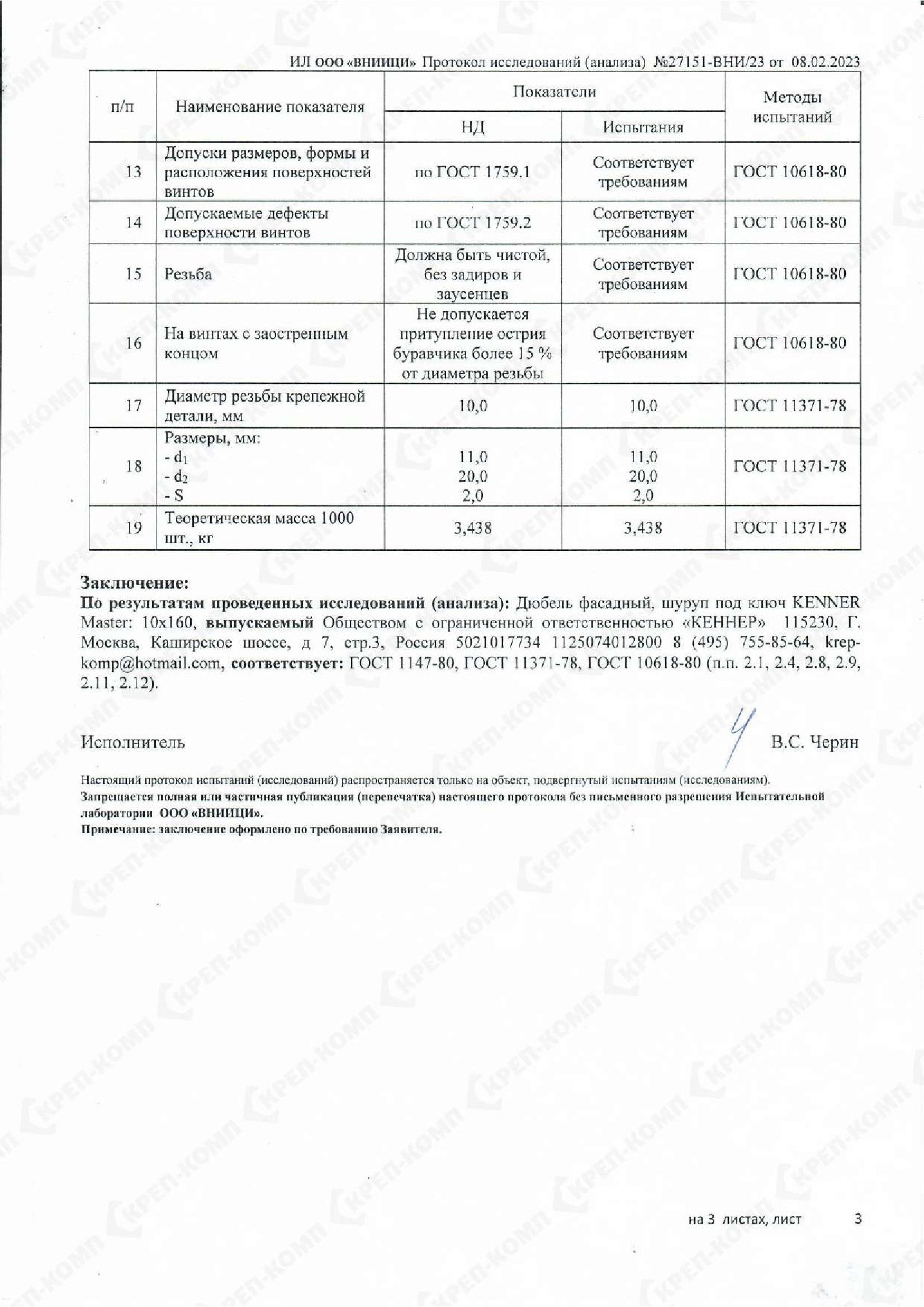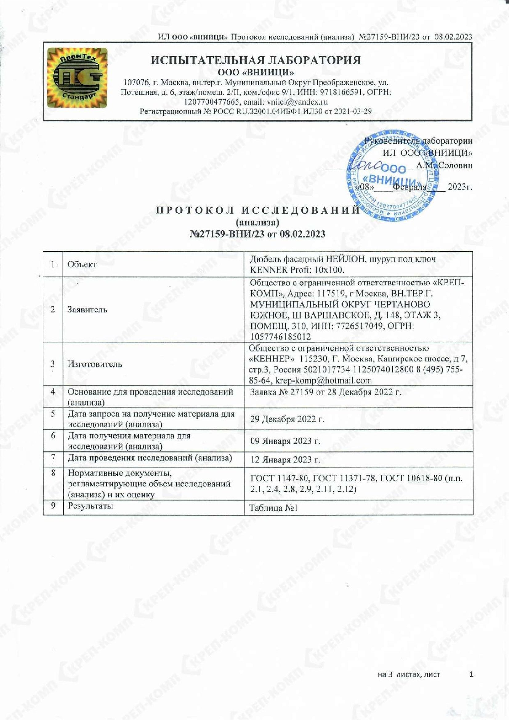 • Скачать Сертификат соответствия на дюбеля кровельные