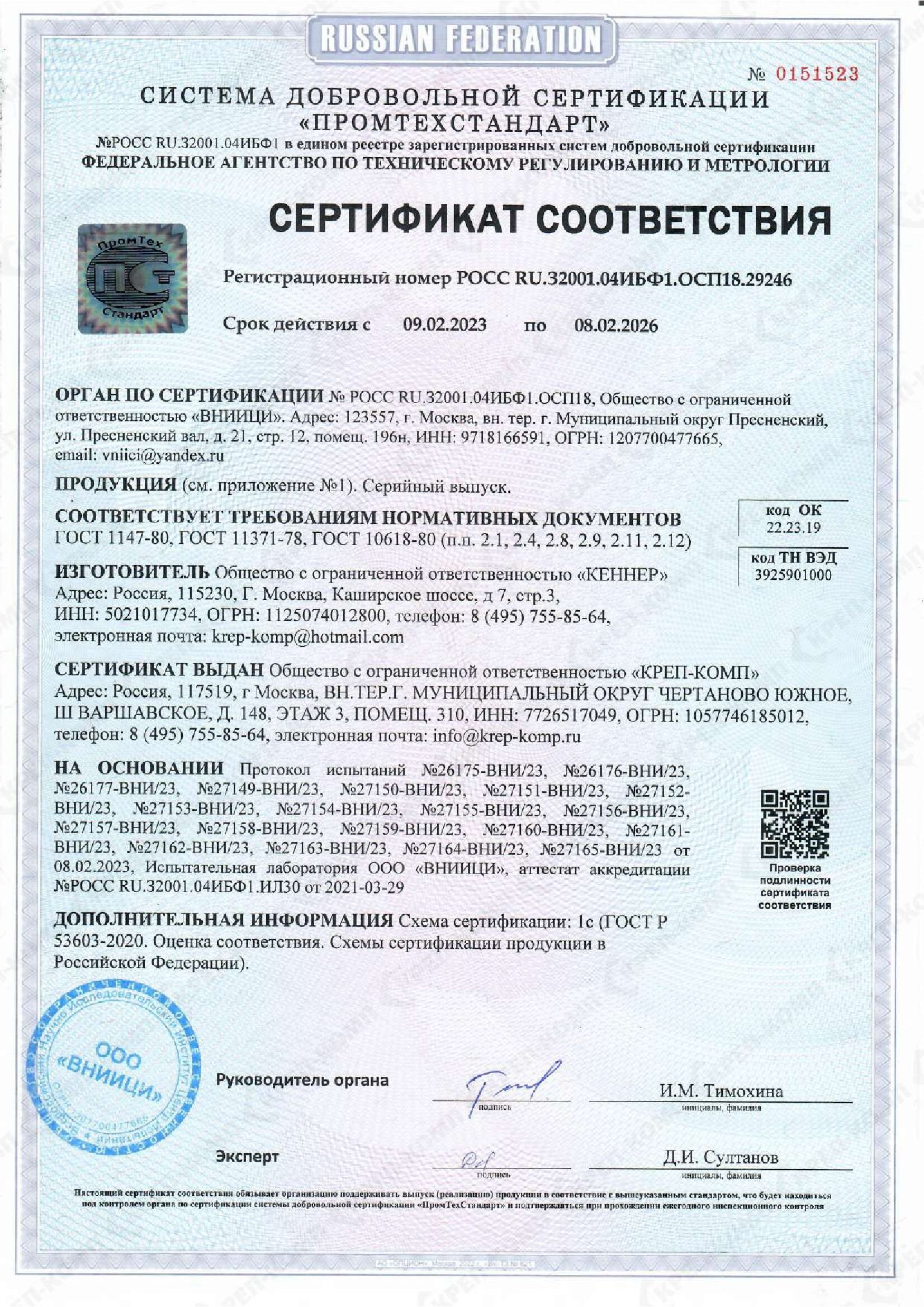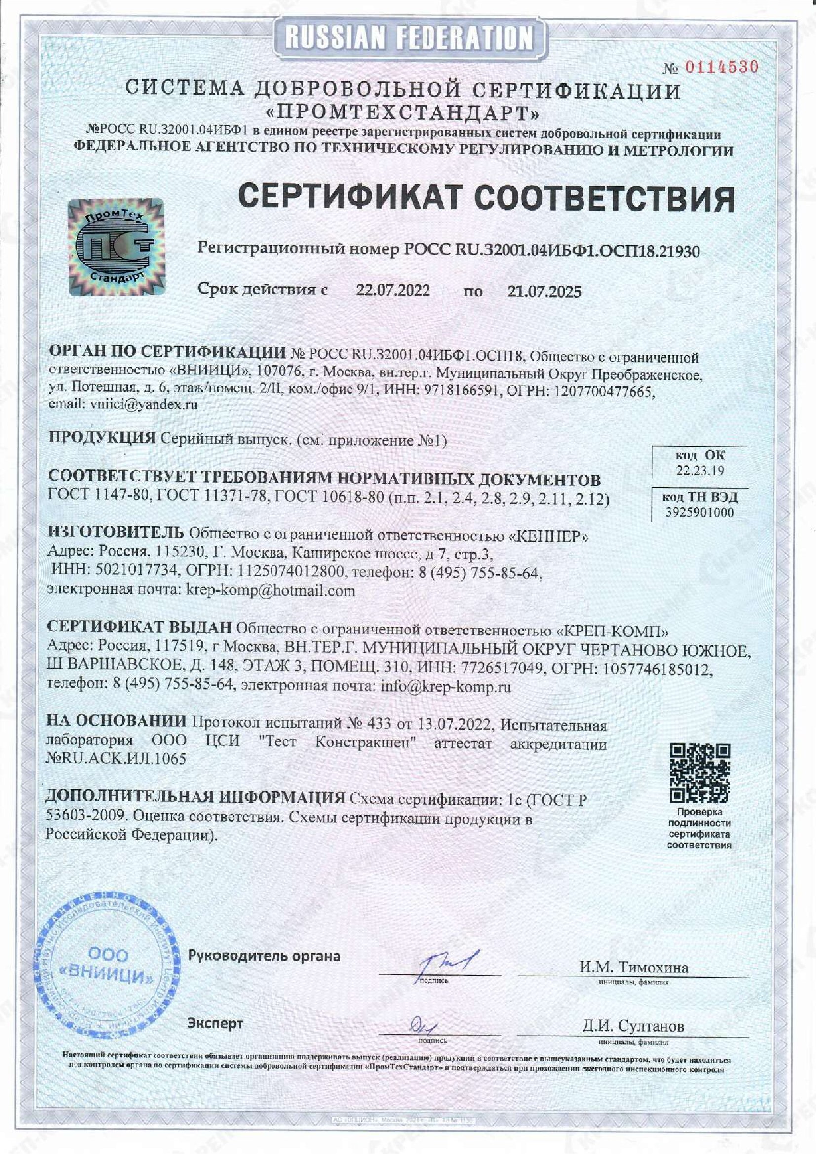 • Скачать Сертификат KENNER