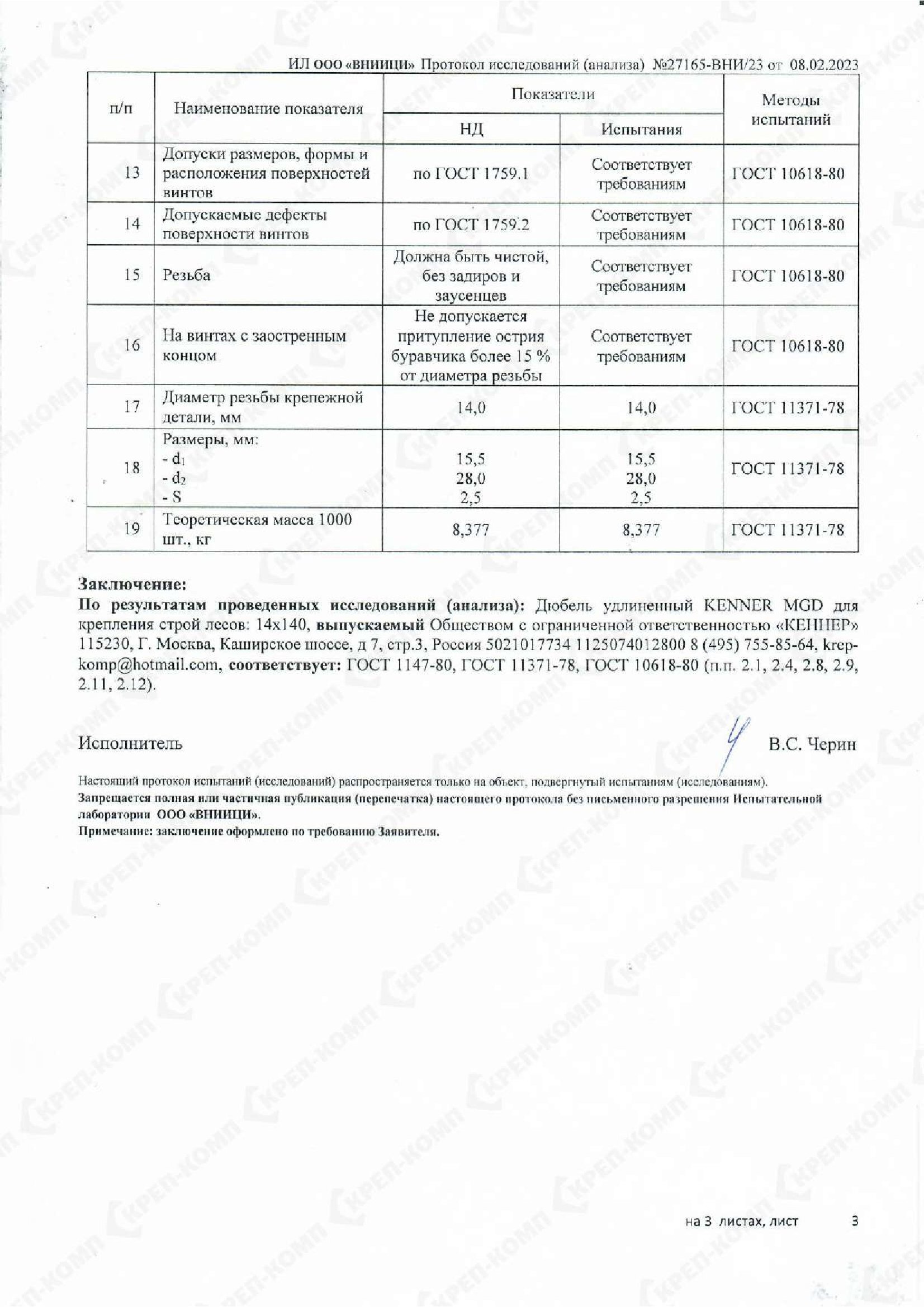 • Скачать Дюбель удлиненный KENNER MGD для крепления строй лесов 14х140